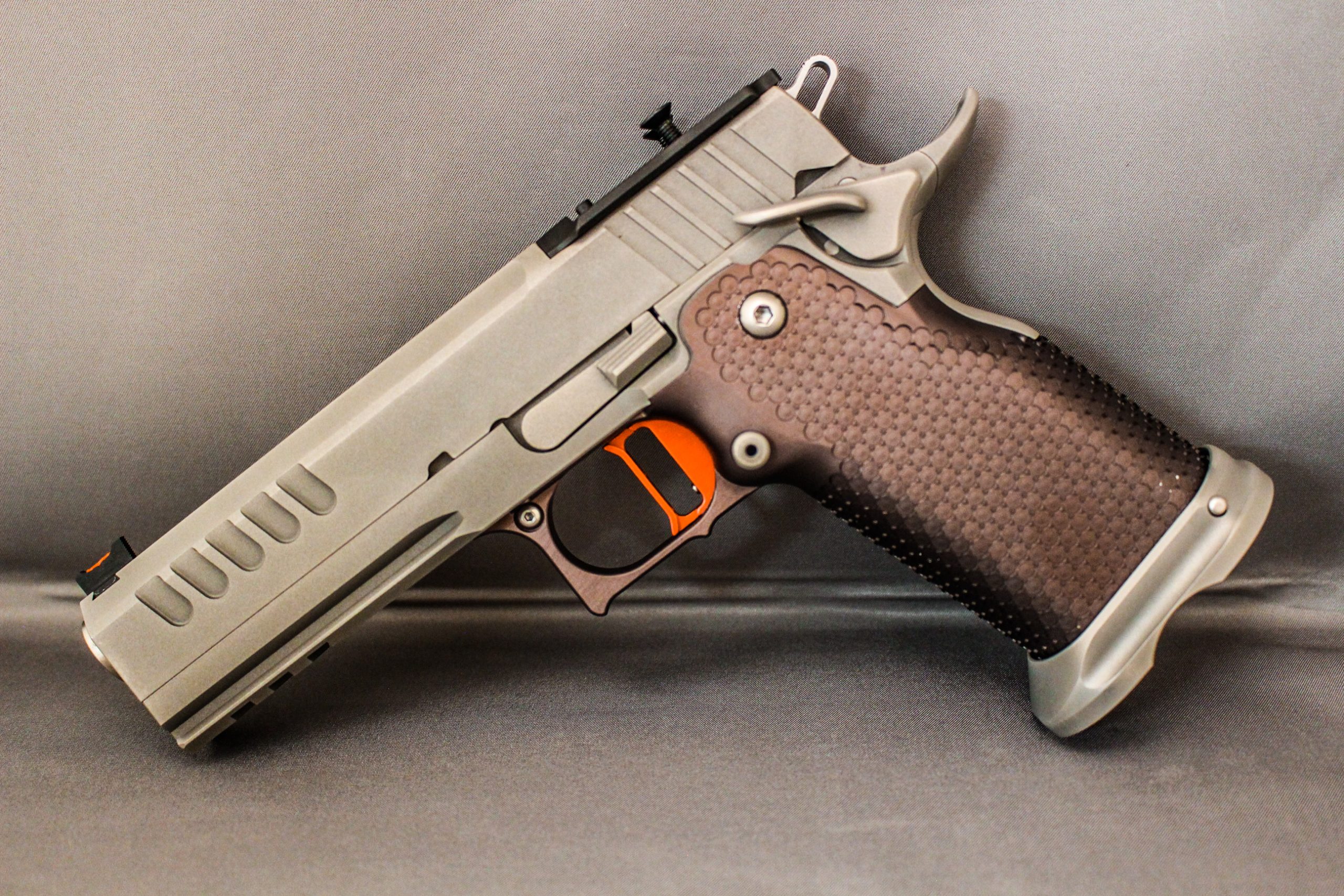 Two coating options for this gun. Silver (PVD) Black (Nitride) and multiple magwell/trigger color options. Please contact us before ordering to ensure we have what you want.